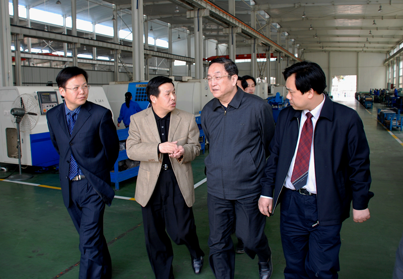 4月5日,中共中央政治局委員、湖北省委書記俞正聲,在天門市委書記別必雄,市委副書記、市長(zhǎng)張愛國(guó)和天門紡織機(jī)械有限公司總經(jīng)理沈方勇的陪同下,興致勃勃地來到天門紡織機(jī)械有限公司考察。俞正聲一面深入生產(chǎn)車間視察,一面了解公司發(fā)展情況。看到一棟棟改造一新的廠房后,俞正聲滿意地說:“天門紡機(jī)每次來看都有很大的變化”。俞正聲得知公司生產(chǎn)的并條機(jī)占有國(guó)內(nèi)四成以上份額,并已和歐洲公司合作開發(fā)技術(shù)頂尖的新產(chǎn)品,高興地說:“希望你們發(fā)展得更好更快”。