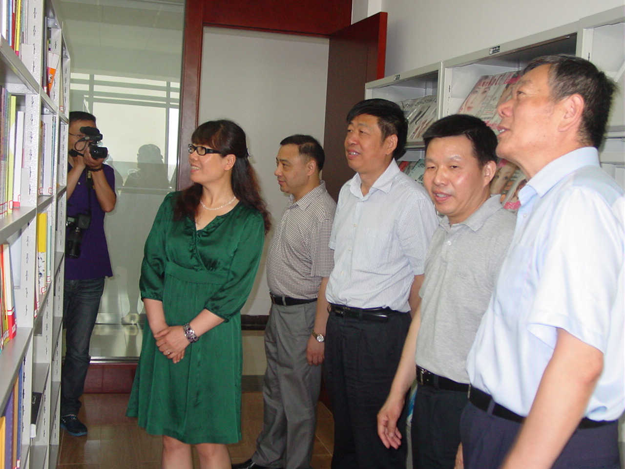 右圖為楊紀(jì)朝副會(huì)長(右一)一行在市委、市經(jīng)信委和公司領(lǐng)導(dǎo)的陪同下在公司圖書室參觀的場景。