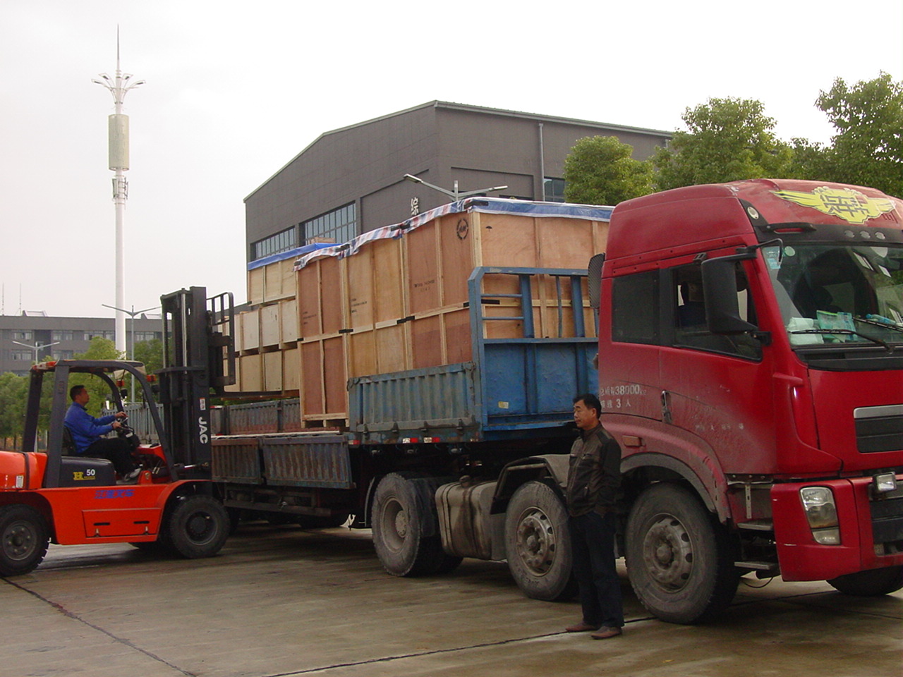 圖為天門紡機公司生產的69臺高檔并條機,整裝待發,現已分期分批出口越南。
