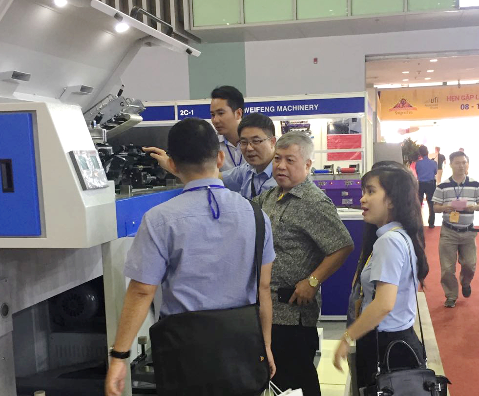 在展會上,位于A2-2D-1湖北天門紡織機械股份有限公司展位人頭攢動、客戶云集,成為整個展會的一大亮點,VINATEX NAM DINH、VICOTEX、 成功紡織、臺灣興業、臺南紡織、東光公司等當地企業負責人親赴現場參觀,華孚時尚董事長孫偉挺等嘉賓在天門紡機展位認真觀看設備演示,詳細了解了產品的新性能和新工藝,對天門紡機并條機與細紗機兩款展機給與高度評價。