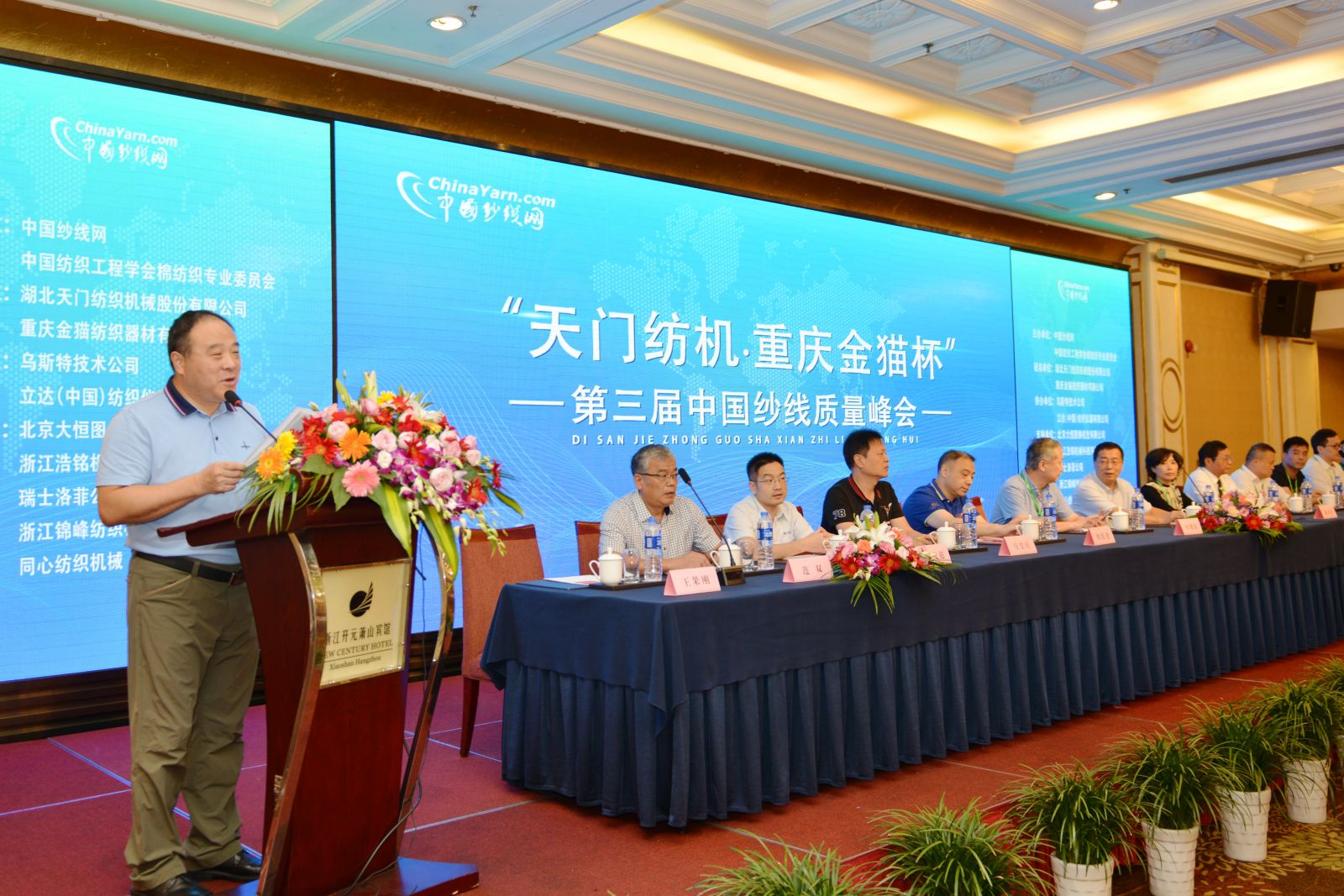 初秋的西子湖畔迎來了一場(chǎng)行業(yè)盛會(huì)。9月19日上午,“天門紡機(jī)•重慶金貓杯”第三屆中國紗線質(zhì)量峰會(huì)在浙江蕭山開元賓館舉行,來自全國21個(gè)省市近200家企業(yè)的500余位代表參加了會(huì)議。
