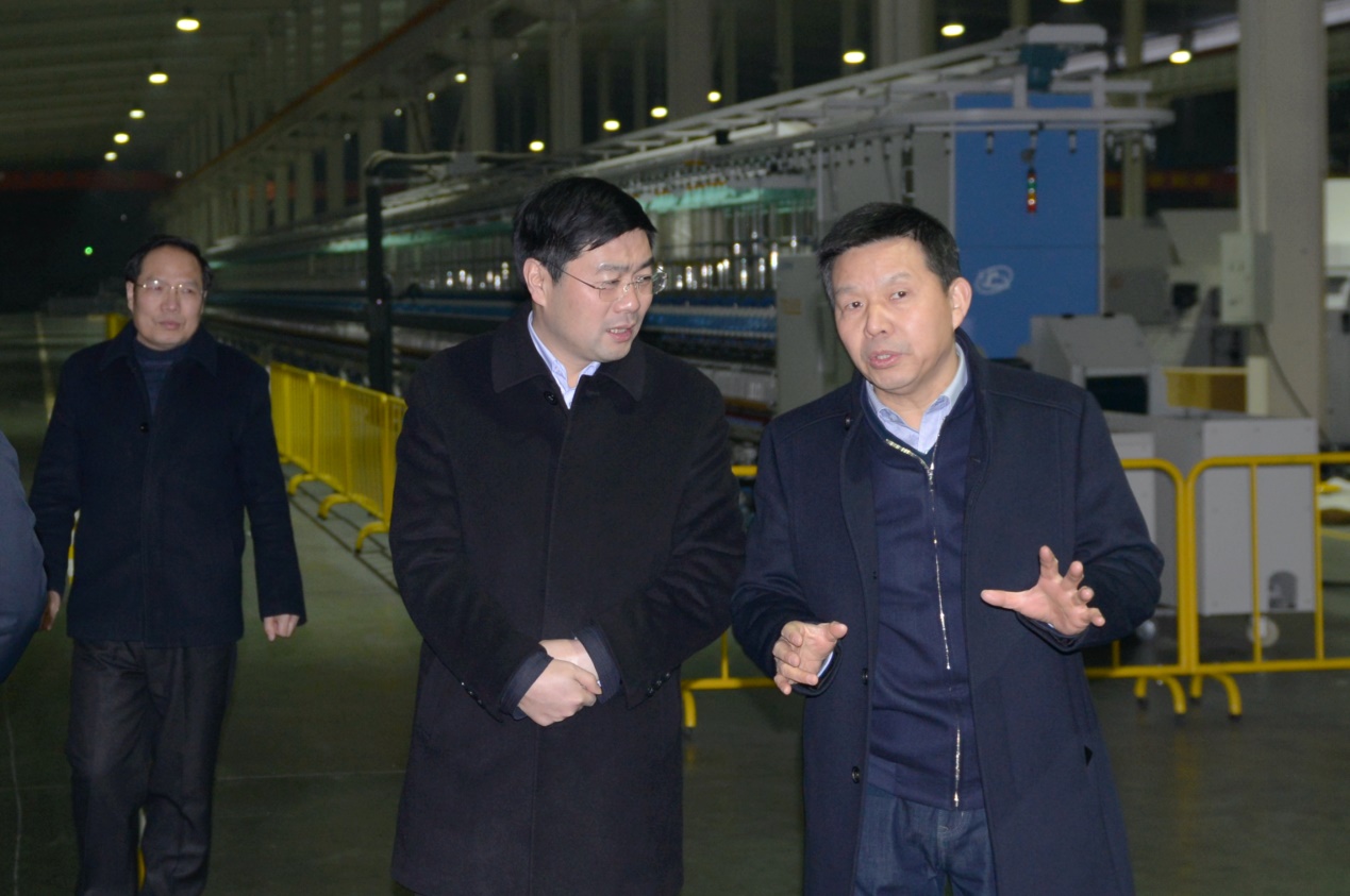 2019年1月2日下午,市委副書記、代理市長楊興銘調(diào)任天門后第一次調(diào)研就來到天門紡機,公司董事長沈方勇、總經(jīng)理焦倫進(jìn)、黨委書記魯?shù)挛呐阃瑮钍虚L參觀了生產(chǎn)現(xiàn)場。