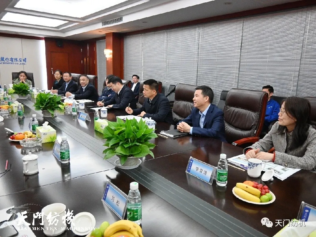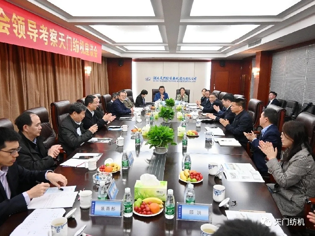 4月14日,中國紡織工業聯合會黨委書記兼秘書長高勇,在中國紡織機械協會會長顧平的陪同下,帶領紡機協會相關部門負責人到天門紡機調研。天門市委副書記、市長楊興銘,副市長高文博以及市經信局局長張文輝陪同參與調研活動。