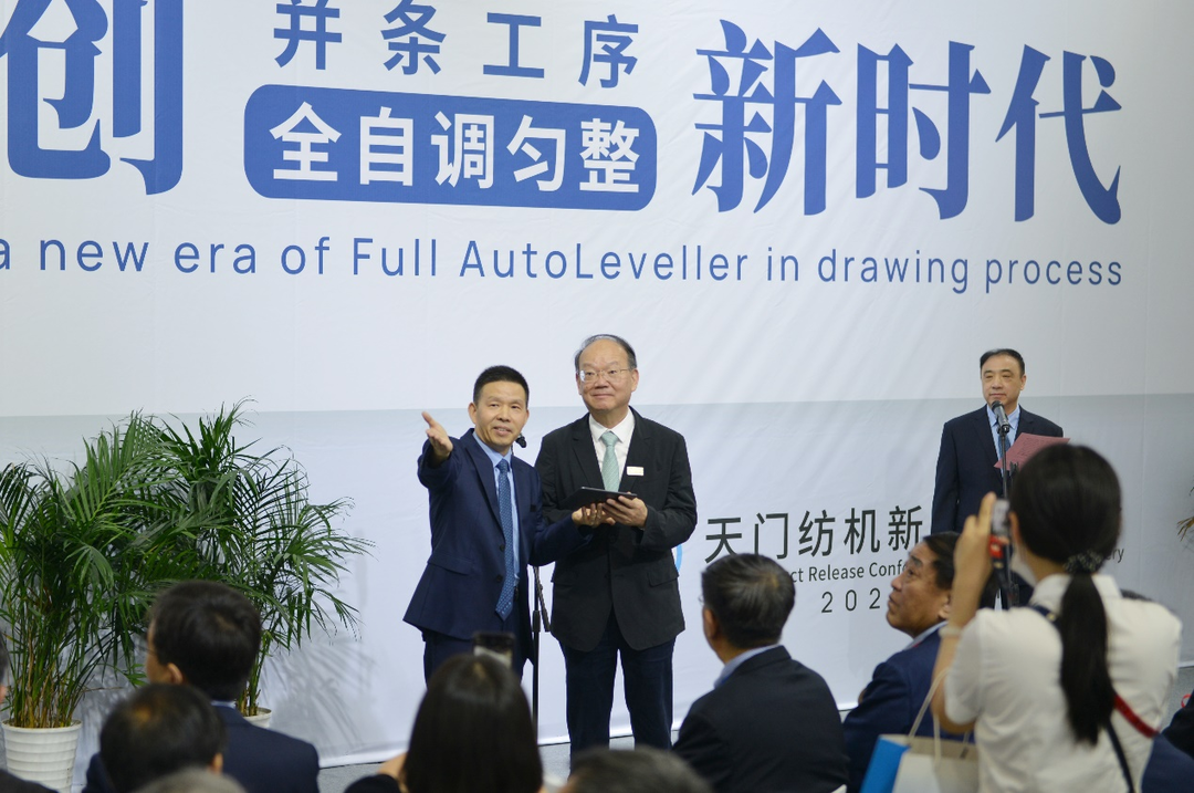 6月12日,天門紡機(jī)在上海的中國國際紡織機(jī)械展覽會(huì)暨ITMA亞洲展覽會(huì)上,舉行“開創(chuàng)并條工序全自調(diào)勻整新時(shí)代”新品發(fā)布會(huì),自主研發(fā)的全球首款超大卷裝帶自調(diào)勻整并條機(jī)TM19、運(yùn)用USG3系統(tǒng)及多項(xiàng)專利技術(shù)的并條機(jī)TM15、帶全伺服控制的多功能TM65型細(xì)紗機(jī)首發(fā)上市。