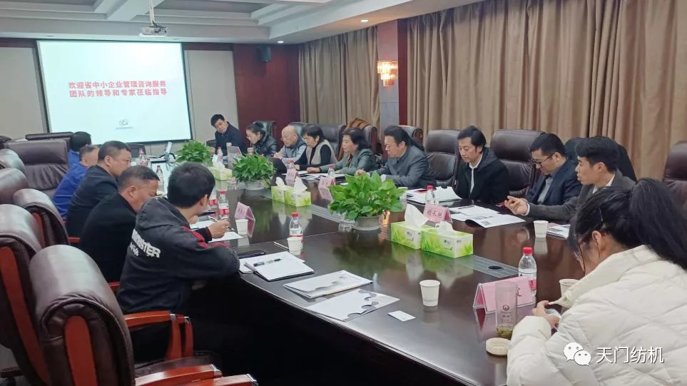 近日,在湖北省經信廳、天門市經信局的組織協調下,省中小企業服務中心走進天門紡機,專程對已評定為“專精特新”的企業開展咨詢服務活動。省中小企業服務中心主任李承繪、市經信局局長張文輝、市經信局黨組成員、總工程師吳郁民及專家團隊全程參與。