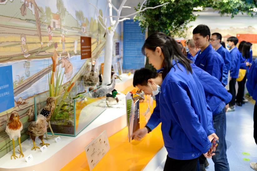 在公園管理員的導引下,我們拾級而上,參觀了科普館。這座科普館是以張家湖歷史、水文、生態為脈絡,傾心打造的集生動、趣味于一體的現代視聽平臺,還原了農耕時代人類休養生息的原貌和花鳥魚蟲百態。走在曲曲折折的參觀回廊上,感覺耳朵不夠使,眼睛也不夠用,太多的信息總是撲面而來。同事們都在感嘆:真是不虛此行,既休閑、愉悅了身心,又學到了知識,收獲滿滿。