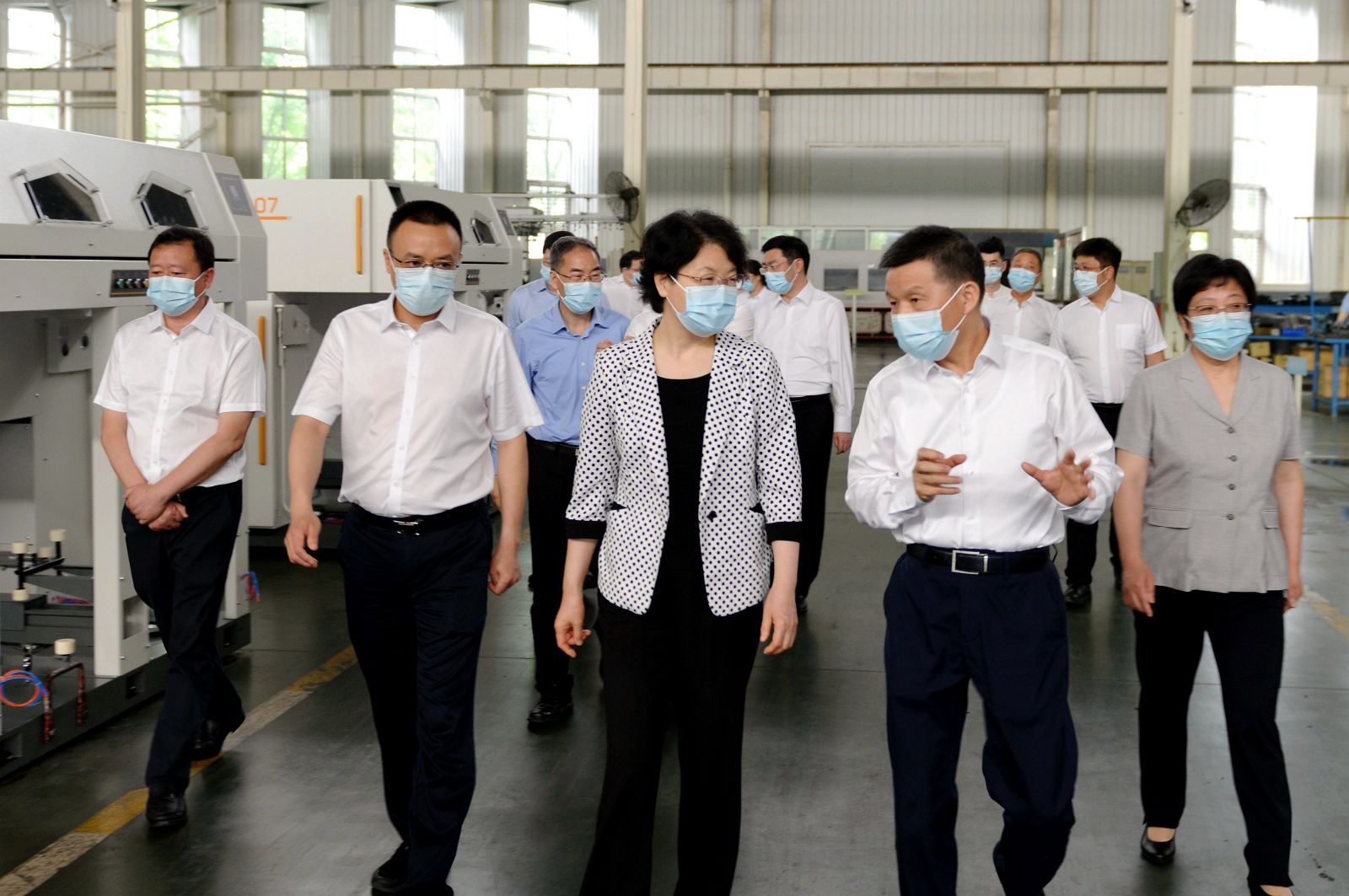 6月2日上午,湖北省副省長肖菊華帶領省科技廳、省教育廳負責人一行,在天門市委書記易先榮、市長楊興銘的陪同下調研天門紡機。