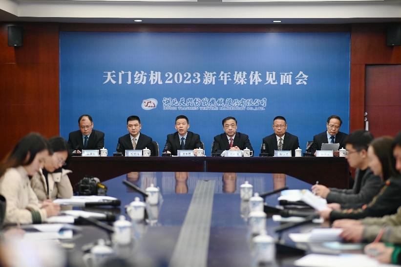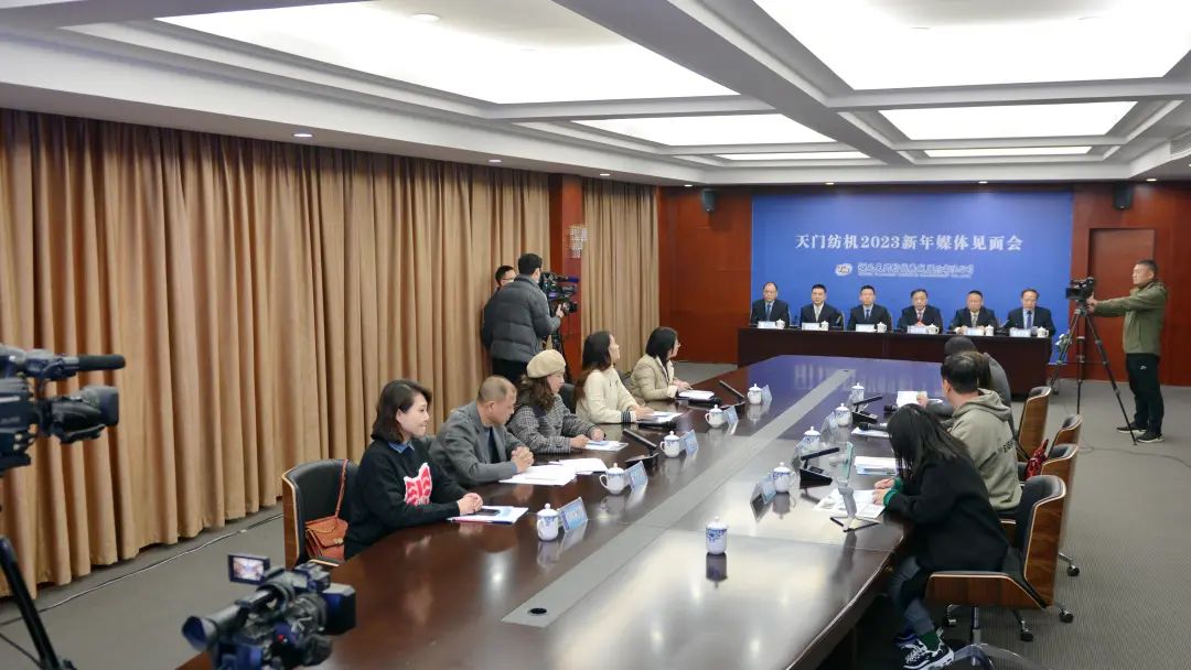 圍繞“疫情三年,天門紡機如何實現逆勢發展”的話題,湖北日報、紡友網、中國紗線網、紡織機械雜志社、中國紡織雜志社、天門電視臺、天門日報、湖北廣播電視臺、棉紡織技術期刊社、中國紡織報等10家媒體分別提問,天門紡機董事長沈方勇、總經理焦倫進、副總經理肖少華、楊文峰和品控總監樊早斌等一一作出解答。