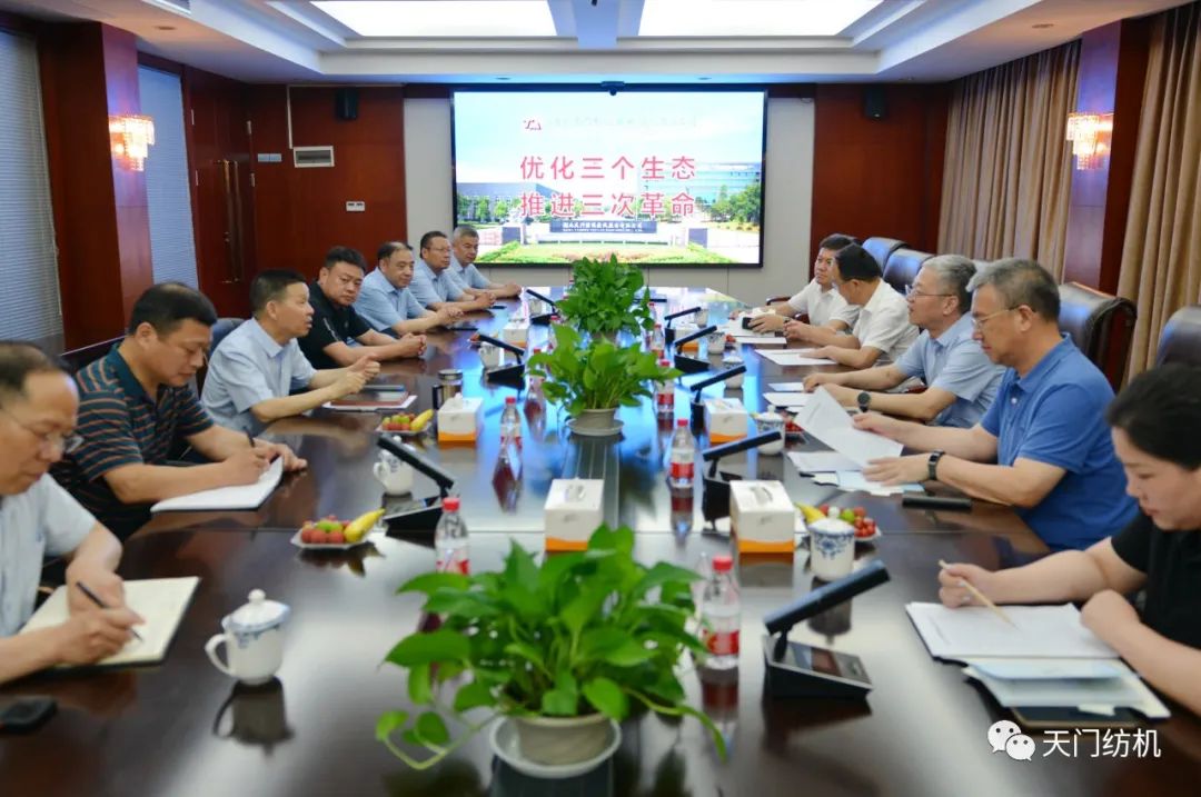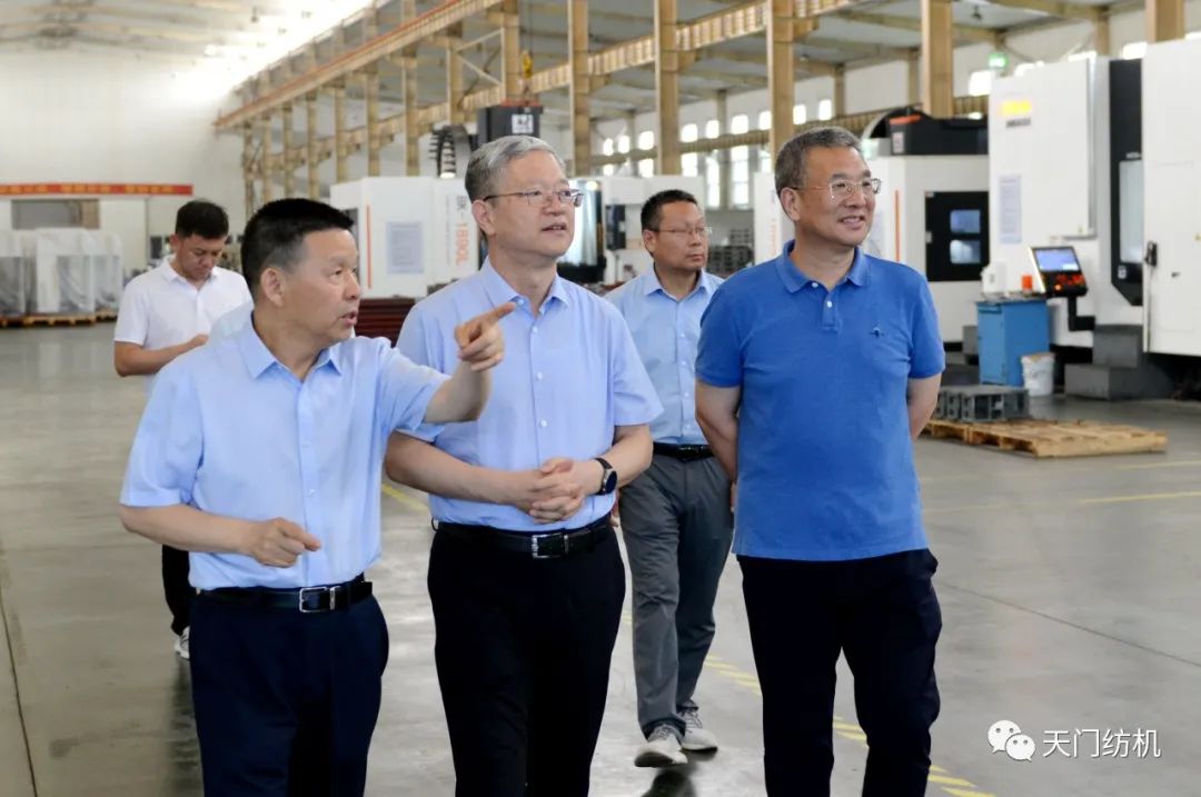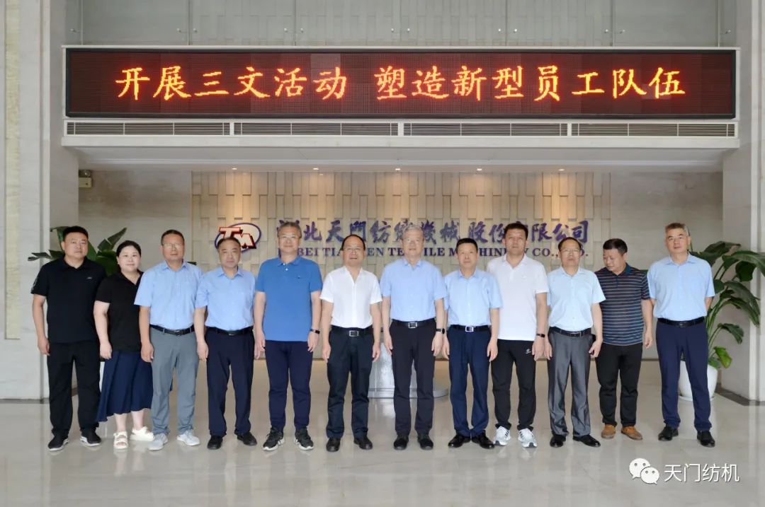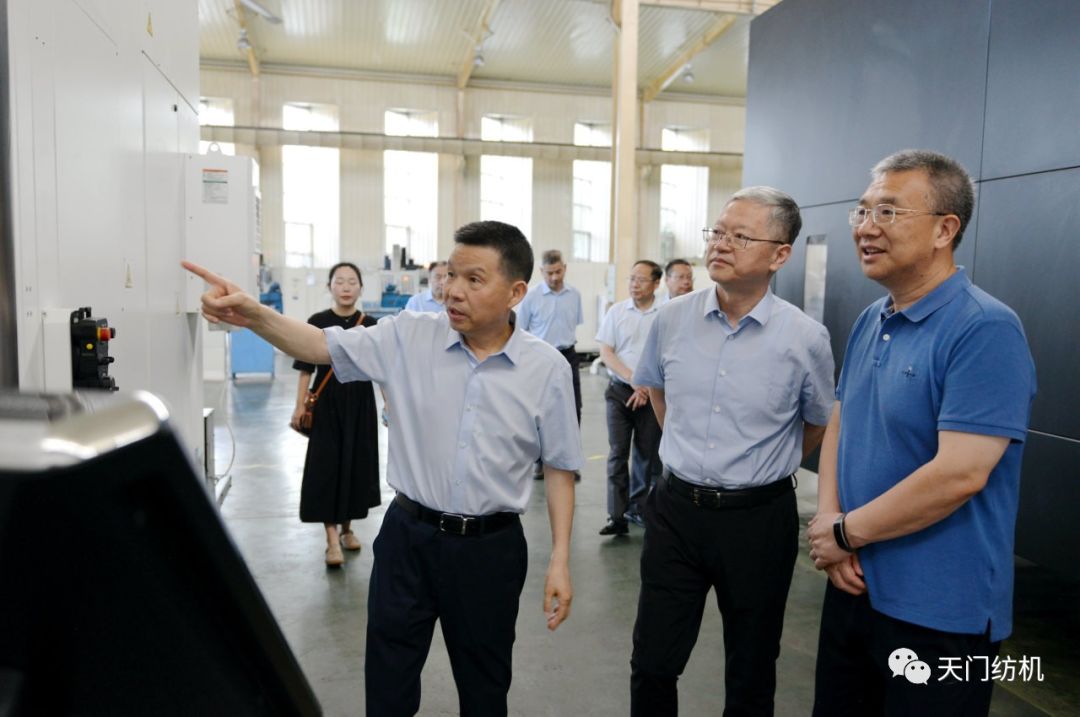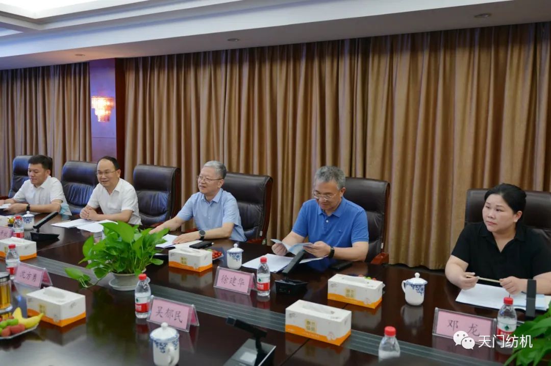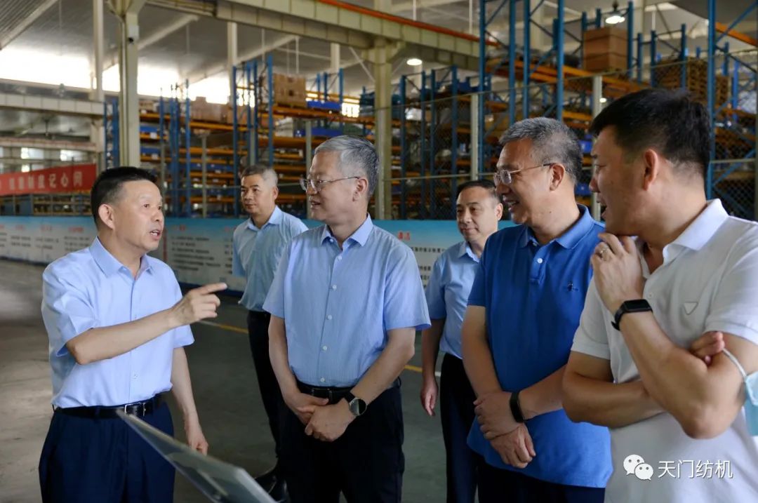 2023年6月27日下午,中國紡織工業聯合會秘書長夏令敏,中國紡織工業聯合會流通分會副會長徐建華、秘書長王水元蒞臨天門紡機調研,湖北省經信廳副廳長周開斌、消費品工業處副處長鄧龍陪同調研。