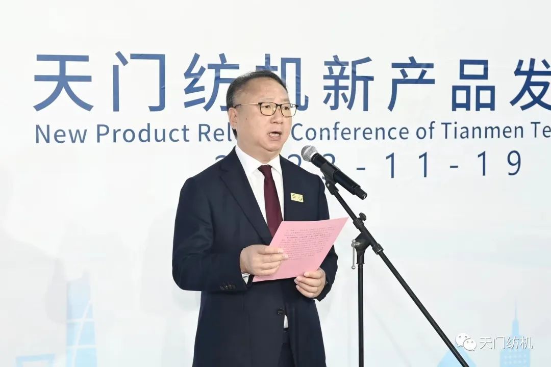 中國紡織工業聯合會會長孫瑞哲蒞臨發布會并講話,他首先對此次新品發布表示祝賀,并對多年來天門紡機的創新發展給予充分肯定。他表示,“天門紡機本次推出的四款并條機,實現并條全工序的集中運動控制、數據管理,‘智并聯·向未來’的理念契合行業發展方向,具有示范引領作用。”