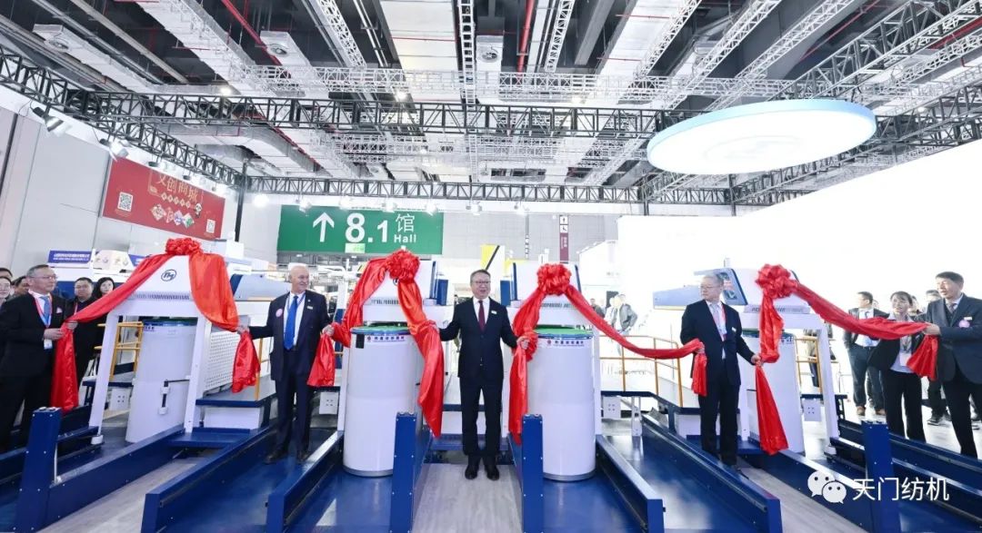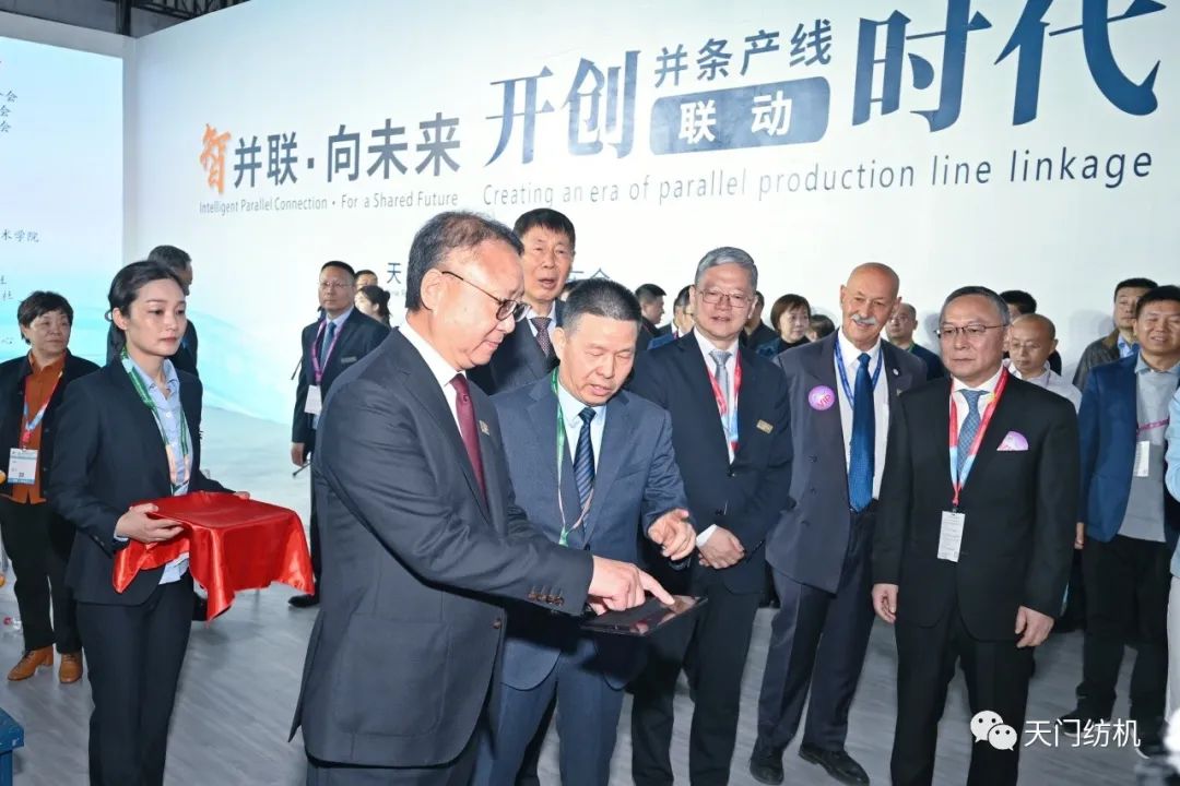 中國紡織工業聯合會會長孫瑞哲,副會長夏令敏、徐迎新,老領導張延愷副會長和歐洲紡織機械制造商委員會主席Mr. Ernesto Maurer等嘉賓共同揭幕,天門紡機T2、T3系列新產品正式亮相。