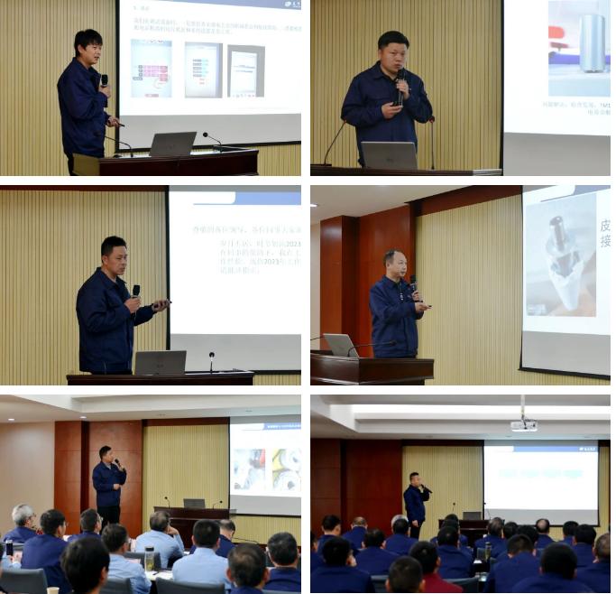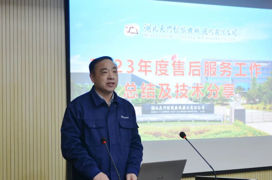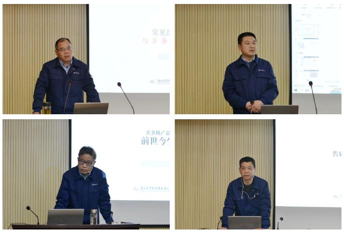 17名售后服務人員作了2023年度工作總結及技術交流;樊早兵總監作專業知識講座;鄭強總工程師安排布置了T1系列并條機改進工作事項;楊文峰副總經理作案例分享;于少波主任作經驗分享。