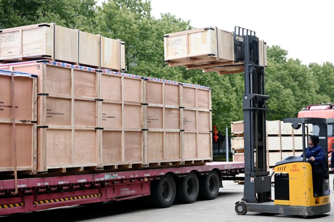 2025年2月5日,大年初八,春寒料峭。當(dāng)濃厚的年味還在江漢平原持續(xù)蔓延的時(shí)候,湖北天門紡織機(jī)械股份有限公司已經(jīng)切換到“開掛”模式,生產(chǎn)車間一片忙碌景象,13臺(tái)并條機(jī)產(chǎn)品披紅掛彩,即將起運(yùn)到客戶手中。